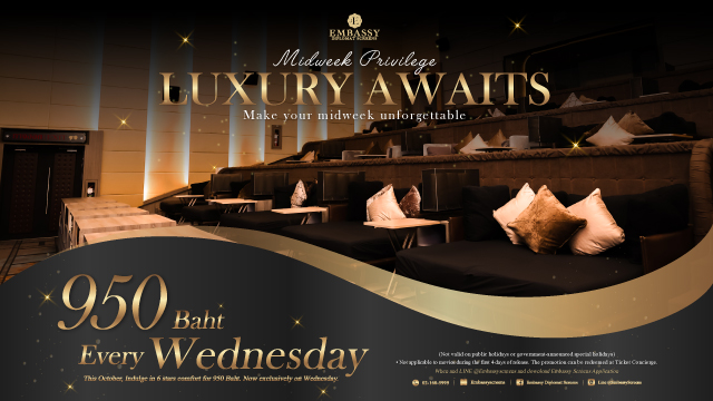 แคปโพสต์นี้แล้วสัมผัสประสบการณ์ชมภาพยนตร์สุดหรูในราคาเพียง 950 บาท (จากปกติ 1,700 บาท)